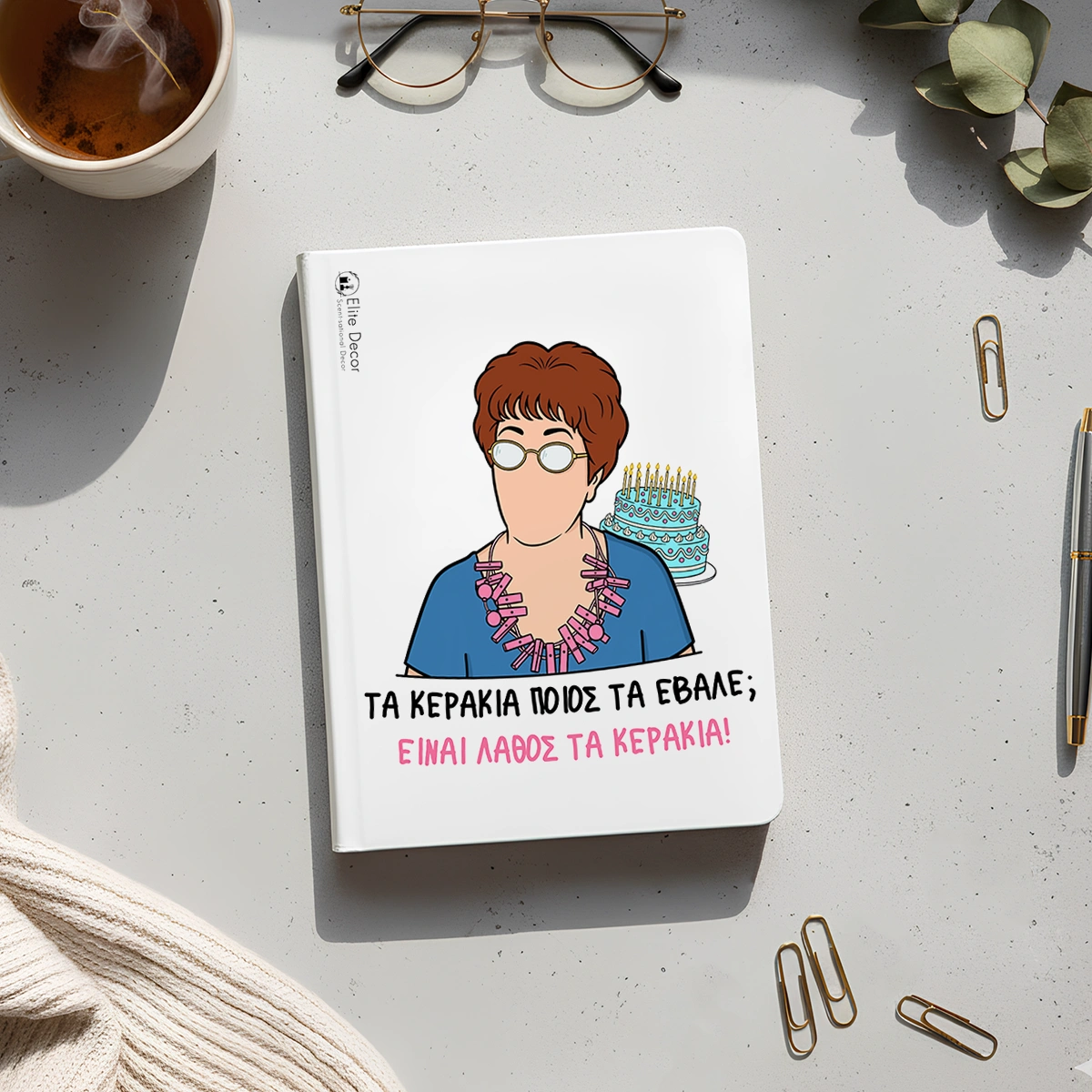 Η ατζέντα αυτή συνδυάζει πρακτικότητα με δόση χιούμορ, καθώς το εξώφυλλό της είναι εμπνευσμένο από αγαπημένες ελληνικές σειρές και χαρακτηριστικές φράσεις που όλοι θυμόμαστε. Ιδανική για σημειώσεις, ραντεβού και όλα όσα θέλεις να έχεις σε τάξη.