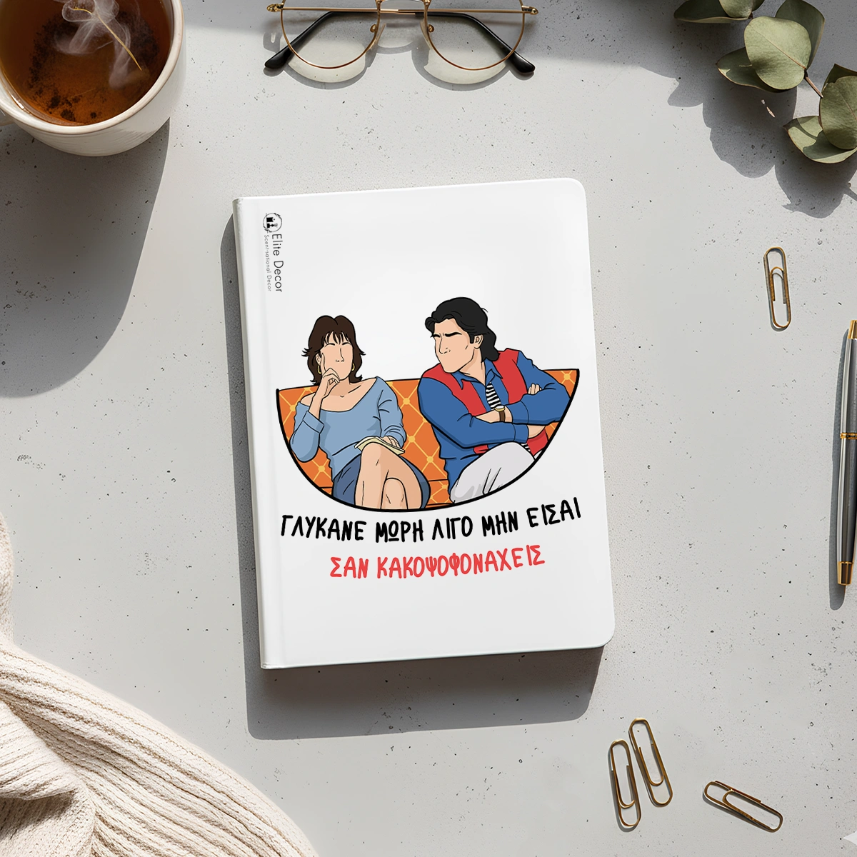 Η ατζέντα αυτή συνδυάζει πρακτικότητα με δόση χιούμορ, καθώς το εξώφυλλό της είναι εμπνευσμένο από αγαπημένες ελληνικές σειρές και χαρακτηριστικές φράσεις που όλοι θυμόμαστε. Ιδανική για σημειώσεις, ραντεβού και όλα όσα θέλεις να έχεις σε τάξη.