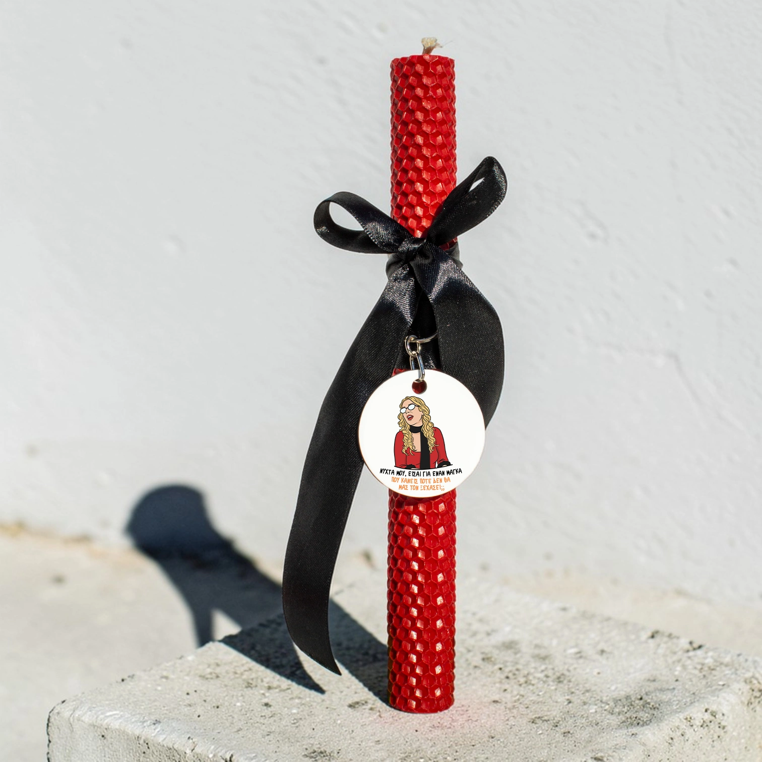 Χειροποίητη λαμπάδα φτιαγμένη από 100% φυσικό κερί μέλισσας και μπρελόκ με την αγαπημένη σου ατάκα.
