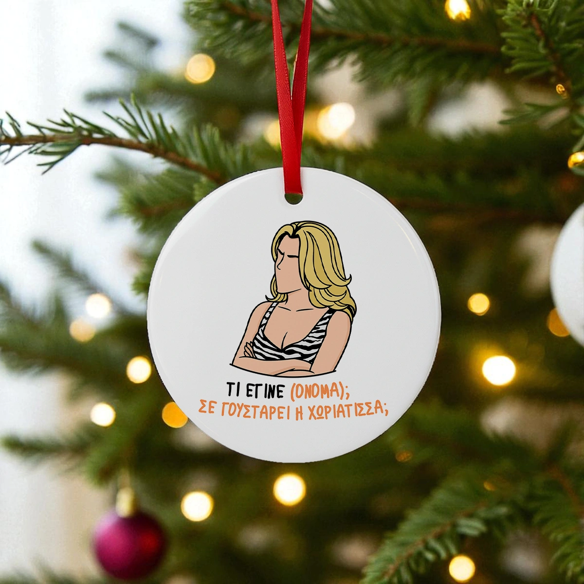 Κάθε στολίδι είναι εμπνευσμένο από αγαπημένους χαρακτήρες ελληνικών σειρών και συνοδεύεται από το χαρακτηριστικό τους σκίτσο και μια ατάκα που όλοι θυμόμαστε. Το ιδανικό στολίδι για όσους αγαπούν τις κλασικές ελληνικές σειρές. Το τέλειο δώρο και για Secret Santa! Προσωποποίησέ την δωρεάν, γράφοντας το όνομα που θέλεις!
