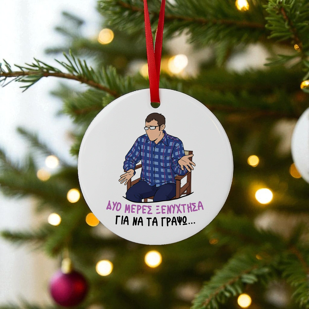 Κάθε στολίδι είναι εμπνευσμένο από αγαπημένους χαρακτήρες ελληνικών σειρών και συνοδεύεται από το χαρακτηριστικό τους σκίτσο και μια ατάκα που όλοι θυμόμαστε. Το ιδανικό στολίδι για όσους αγαπούν τις κλασικές ελληνικές σειρές. Το τέλειο δώρο και για Secret Santa!