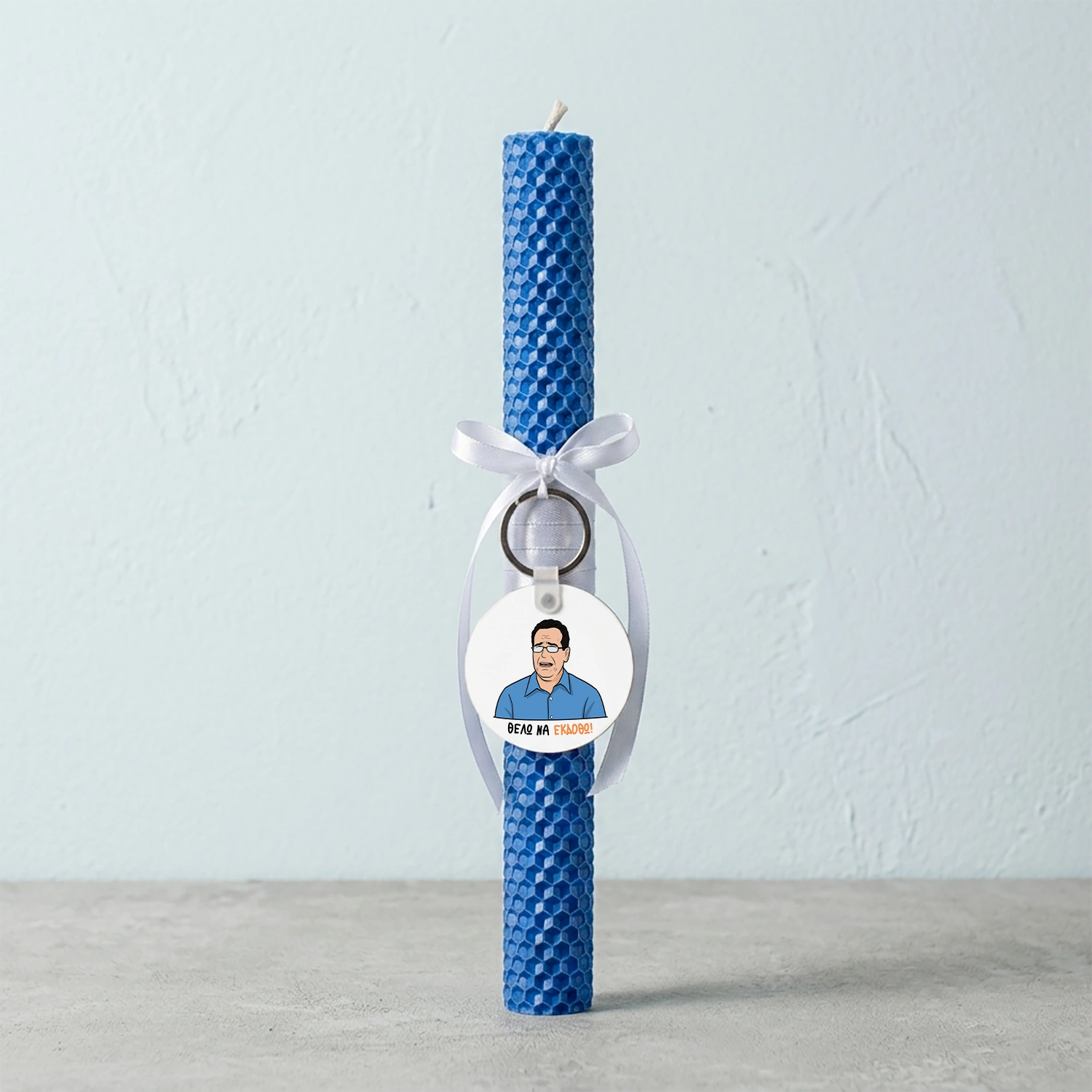 Χειροποίητη λαμπάδα φτιαγμένη από 100% φυσικό κερί μέλισσας και μπρελόκ με την αγαπημένη σου ατάκα.